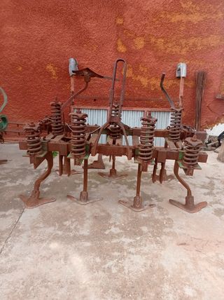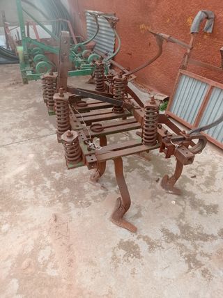 Se vende maquinaria agrícola de color verde. Precio negociable. - Estructura metálica robusta. - Incorpora resortes para amortiguación. - Diseñada para trabajar la tierra.