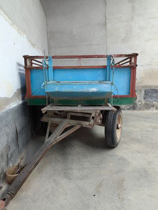 Remolque agrícola o para utilizar como carro de caballos o mulas, cubiertos con estructura metálica, con lanza para un caballo.