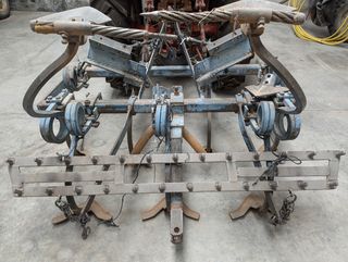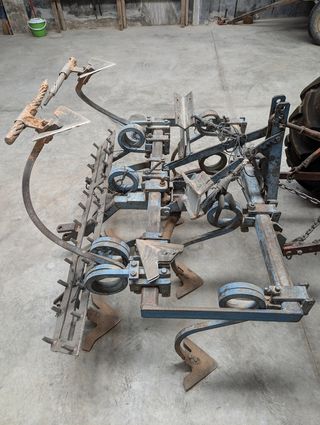 Cultivador de dos filas de brazos. Se incluye rastra y suplementos.