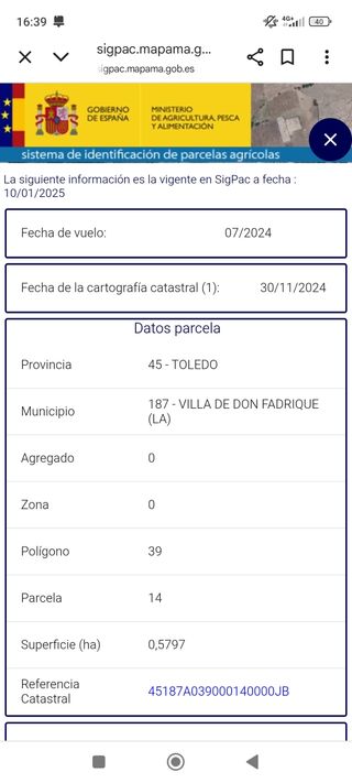 Hola se vende 1,1Ha.Tierra arable buena para plantacion de pistacho,almendro u olivos,en La Puebla De Almoradiel (Toledo) Dos parcelas bajo una misma linde,superficie total 11.000m. Datos Sigpac.Termino : La Puebla De Almoradiel(Toledo).Poligono : 37.Parcela : 24 y 101.Superficie total 11.000m. Tlf 659547601. Precio 6.600 euros..