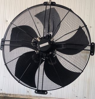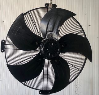 Ventilador axial de la marca ebmpapst, modelo A6D800 AD0101. Diseñado para una ventilación eficiente. - Color negro. - Aspas de gran tamaño para un flujo de aire potente. - Rejilla protectora metálica.