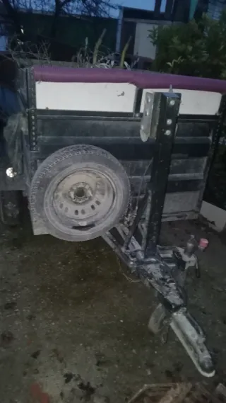 Remolque de carga con laterales de metal. Esta oxidado pero tiene toda las chapas bien nada podrio ni mal estado No es volteable y no puede circular sería para finca privada las ruedas se le an puesto nuevas y las recamaras es ideal para carroza de el romeria - Color azul. - Laterales superiores de metal oxidado. - Rueda de repuesto. - Estructura metálica.