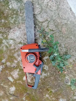 Motosierra de la marca Echo en color naranja.tiempi parada, buena compresion - Barra de corte. - Mango de agarre.