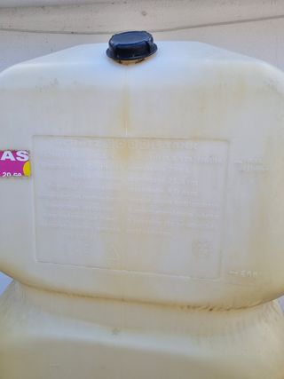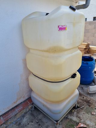 Cuba de fumigación con capacidad de 500 litros. - Depósito de plástico azul. - Chasis metálico con rueda. - Sistema de pulverización.