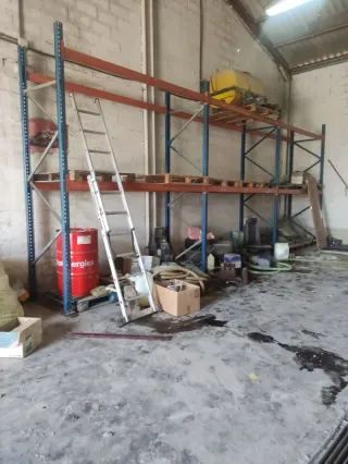 Se vende estantería industrial de palets, ideal para almacenes o negocios. - Compuesta por cuatro tramos. - Estructura metálica resistente.