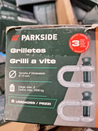 Set de 4 grilletes de la marca Parkside. - Tamaño/Dimensiones: Ø 10 mm - Carga máxima: 1000 kg - Incluye 4 unidades