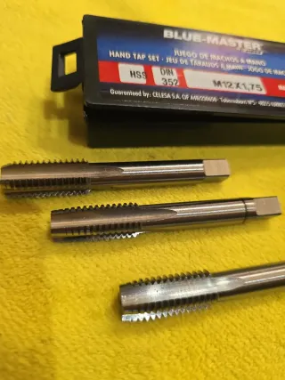 Juego de machos de roscar de la marca Blue-Master. - Tamaño: M12x1,75. - Material: HSS. - Norma: DIN 352.