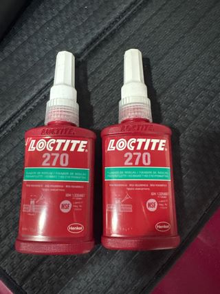 Dos botellas de Loctite 270, un fijador de roscas de alta resistencia. - Ideal para fijar y sellar roscas. - Alta resistencia. - Certificado NSF.