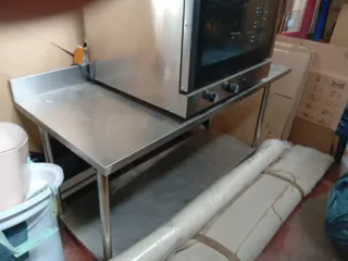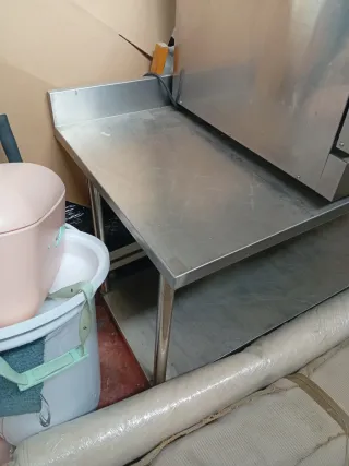 Mueble robusto de acero inoxidable ideal para hostelería. Cuenta con una superficie amplia, cajones y estantes inferiores para almacenamiento. Recoger en Leganés. - Medidas 2,00m largo x 0,60 de fondo x 0,90 de alto. - Fabricado en acero inoxidable. - Diseño funcional y resistente. - Amplia superficie de trabajo.