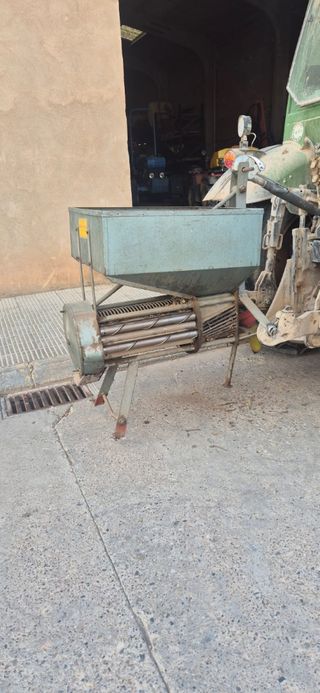 Peladora esquetlladora d'ametlles Puigdellivol a la tdf del tractor. Peladora de almendras