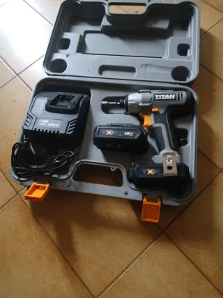 Se vende atornillador Titan de 18V, ideal para trabajos de bricolaje y profesionales. Incluye cargador y maletín para su transporte y almacenamiento. - Atornillador Titan. - Batería de 18V. - Cargador. - Maletín de transporte. - Esta perfecto ain no se ha usado