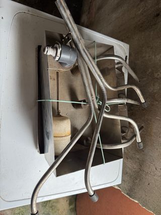Se vende llenadora de botellas de acero inoxidable. Tiene cuatro grifos. La estructura se ve robusta y en buen estado. - Fabricada en acero inoxidable. - 4 grifos para llenado. - Incluye flotador.