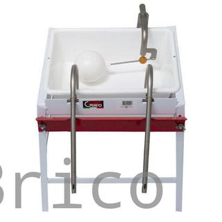 Equipo para embotellar vino, sidra o cerveza de forma manual. - Construcción en acero inoxidable. - Incluye tres tubos de llenado. - Dispone de un flotador amarillo.