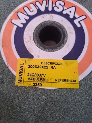 Muela de corte de la marca Muvisal, en perfecto estado. - Referencia: 24C80J7V - Dimensiones: 200x32x22 mm - Máxima velocidad de rotación: 3350 R.P.M. - Material: Widia