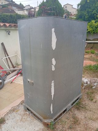Depósito de gasoil de 1000 litros usado. Está en buen estado, aunque presenta señales de uso. - Capacidad: 1000 litros - Material: Metal - Color gris