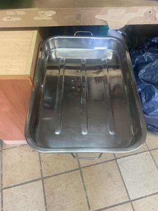 Bandeja de acero inoxidable de uso industrial. Ideal para hornos y cocinas profesionales. - Fabricada en acero inoxidable. - Diseño robusto y duradero. - Asas integradas para facilitar el transporte. 53x 38 cm, altura 6’5 cm