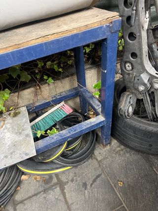 Mesa de trabajo resistente, ideal para taller o garaje. Su diseño es funcional y ocupa poco espacio. - Superficie amplia para herramientas. - Estructura sólida y duradera. ancho 40 largo 171 alto 92