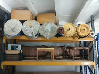 Se venden estanterías metálicas de gran capacidad, ideales para almacenes o negocios. - Estructura robusta de metal. - Múltiples baldas para almacenamiento. - Color azul y naranja. Pida su presupuesto