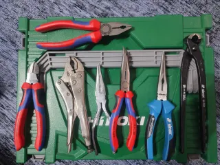 Lote de herramientas manuales de las marcas Knipex y Sinex. - Alicates de corte. - Alicates de presión. (La más desgastada) - Alicates de punta recta y curvada - Alicates universales. Las únicas que se han utilizado un par de veces es la de corte y la tenaza.