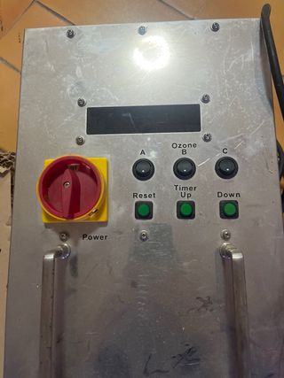 Equipo de desinfección por ozono y aire. Ideal para purificar ambientes. - Construcción en metal. - Salida de aire. - Panel de control con botón de encendido/apagado. Desconozco si funciona. Quien sepa cono usarlo lo podría probar. Estoy mas interesado en realizar un truque