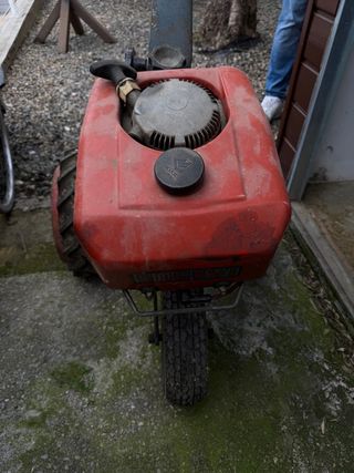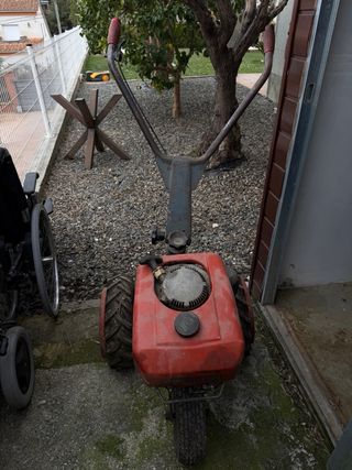 Motocultor de color rojo, ideal para trabajos en huertos o jardines. - Diseño robusto y funcional. - Rueda delantera para maniobrabilidad. Se paro hace años funcionando, ni entiendo de motores ni de motocultores el de la tienda me dijl q por menos de 180€ no lo venda que quien lo sepa poner en marcha abra triunfado Acepto cambio