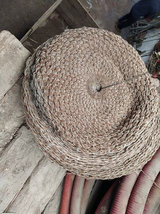 Capachos de material resistente, enrollados y listos para usar, precio por unidad. - Material: Fibra natural trenzada. - Color: Tonos marrones y beige. - Forma: Enrollados en espiral.