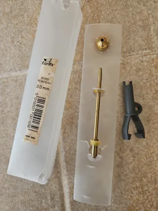 Boquilla de repuesto para aerógrafo Earlex. - Modelo: Buse/Pointeau. - Tamaño: 3.0 mm. - Incluye varilla y boquilla. - Se presenta en su estuche original.