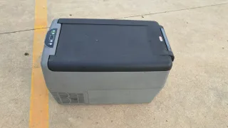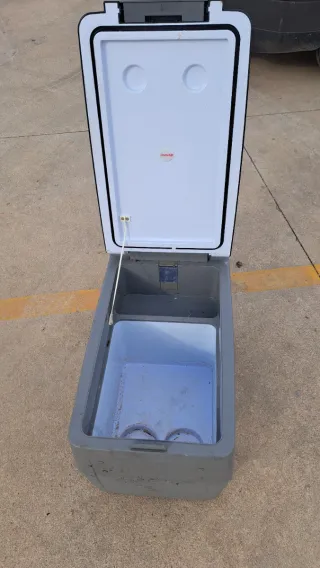 Nevera portátil para camión, ideal para mantener tus bebidas y alimentos frescos durante tus viajes. - Color gris. - Tapa blanca con cierre hermético. - Interior espacioso.