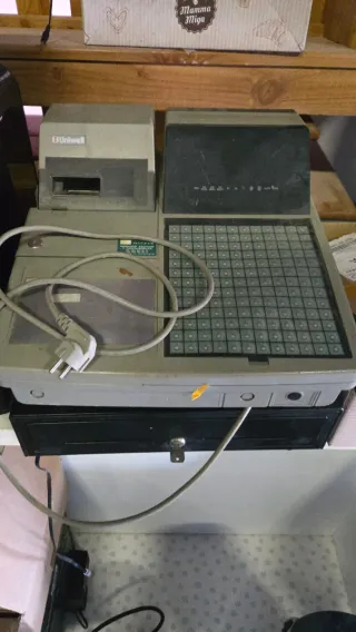 Caja registradora antigua de la marca Uniwell. Un modelo clásico para coleccionistas o para darle un toque retro a tu negocio. - Diseño vintage. - Teclado numérico. - Compartimento para cajón. - Cable de alimentación incluido.