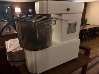 Amasadora industrial de gran capacidad, ideal para panaderías y pizzerías. - Bol de acero inoxidable. - Protección de seguridad en la rejilla. - Panel de control con botones de parada y marcha.