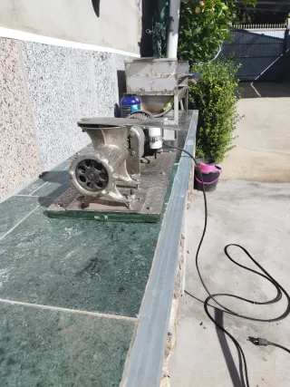 Picadora de carne industrial modelo 32, ideal para procesar grandes cantidades de carne, pitracos, etc para perros motor industrial a 220v para mas info al tlf: 617 193 512 - Construcción robusta en metal. - Motor eléctrico potente. - Base estable para sujeción.