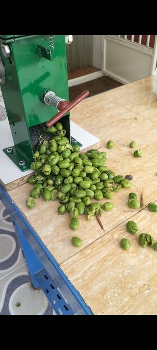 Maquina de partir aceitunas de mesa, manzanilla, picual, etc. Rápida, limpia y sin salpicaduras. Se fabrican por encargo.