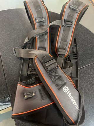 Se vende arnés para herramientas Husqvarna, e - Diseño cómodo y resistente. - Color gris y naranja. - Ideal para llevar herramientas de forma segura.
