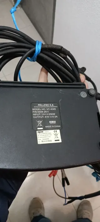 Cable con transformador para el modelo Pellenc Olivion. - Incluye pinzas de conexión. - Cable de alimentación negro. Precio negociable