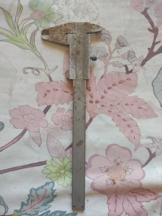 Calibrador de metal para mediciones precisas. - Fabricado en metal resistente. - Diseño clásico de pie de rey.