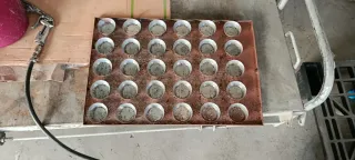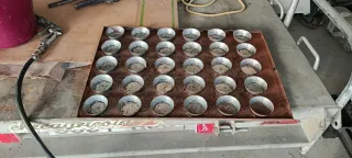 Conjunto de bandejas metálicas para llenadora de magdalenas. - Medidas 60/40. - para 5 boquillas - de cuello alto, 47 mm de interior.