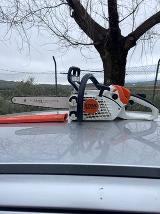 Vendo motosierra stihl 023-C es una moy buena máquina, con mucha fuerza, ideal para podar, trocear leña y limpieza de cabezas de olivos. Corta la leña como mantequilla por gruesa que está sea. Se puede ver y probar sin compromiso. La carcasa se puede abrir y cambiar o tensar la cadena sin necesidad de herramientas.