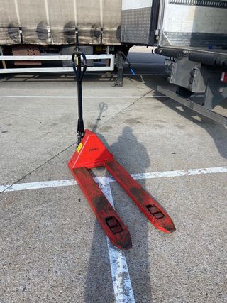 Transpaleta manual de color rojo, con capacidad de carga de 2500kg. Se encuentra en excelente estado. - Capacidad: 2500 kg. - Color: Rojo. - Estado: muy buenas condiciones .