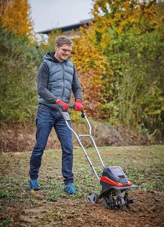 Einhell Aradora inalámbrica- GE-CR 30 Li Power X-Change - Iones de litio de 36 V, interruptor de seguridad de 2 puntos, mango plegable, ruedas de transporte, suministrado sin batería ni cargador Ancho de corte: 300 mm Profundidad de corte: 200 mm Diámetro de cuchillas: 22 cm Número de cuchillas: 4