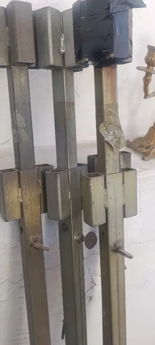 Conjunto de hierros metálicos, ideales para montar un puesto en mercadillos o ferias. - Estructura robusta de metal. 5 Patas de parada una de ella con un trozo de hierro en el cabezal ( se puede sacar) Quedan 3 patas Miden 1,40 sin abrir Los hierros plateados son Dobles Se alargan 10€ cada Pata 20€ Cada hierro plateado Se puede negociar el lote