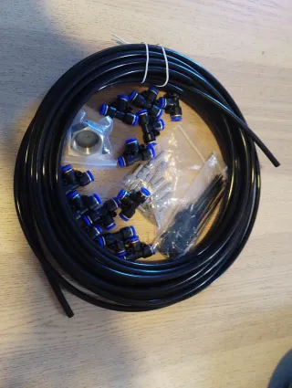 Kit completo para sistema de riego por nebulización. - 10 metros de tubo de PE de 1/4 - boquillas de inserción rápida - abrazaderas para tubo