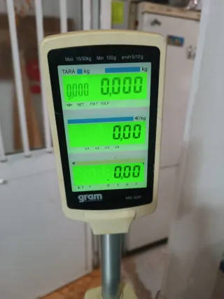 Báscula comercial profesional marca GRAM, en muy buen estado, totalmente operativa. ✔️ Peso preciso y estable ✔️ Pantallas y teclado funcionando ✔️ Impresora de tickets OK ✔️ Capacidad 15/30 kg – precisión 5/10 g ✔️ Poco uso, estética cuidada ⚠️ No dispone de verificación metrológica vigente, por lo que no está homologada para venta directa al público. 👉 Precio ajustado por este motivo. 💰 Precio: 180 € 👉 Escucho ofertas razonables. Ideal para frutería, carnicería, obrador o uso interno. Se puede ver y probar sin compromiso. Interesados llamar 636768269