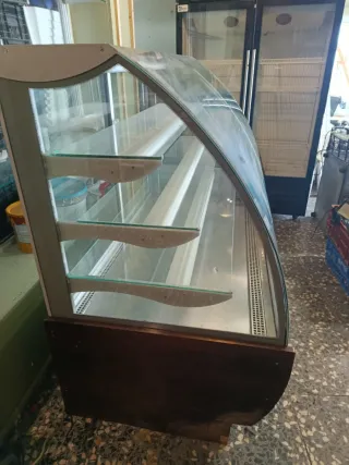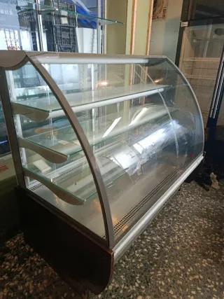Nevera expositora con diseño curvo y cristal frontal. - Estructura metálica. - Estantes de cristal. - Iluminación interior.
