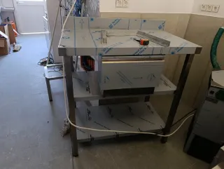 Mueble cafetero de acero inoxidable, ideal para negocios. - Tres estantes amplios. - Cajón integrado. - Acabado protector 1,05 altura 0,60 fondo 1,00 ancho