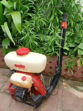 Fumigador a motor marca Solo, modelo Port 423. - Tanque principal de gran capacidad. - Depósito auxiliar. - Diseño ergonómico para transporte.