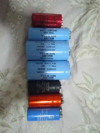 Se vende lote de condensadores electrolíticos de aluminio de diferentes marcas y valores. - Condensador Mallory CGS202T200V4C3PL 2000MFD 200VDC 250VDC MAX SURGE 85C - Condensador Mallory Type CGO 39000MFD 7.5VDC 85C - Condensador Aerovox 2000MFD 200VDC 250VDC MAX SURGE 85C - Condensador Siemens 200uF 100V- 85C - Condensador 2200 uF 10 VDC 85C nuevo sin uso ninguno se venden individual pregunta precio negociable hago envíos rápido y trato en mano.