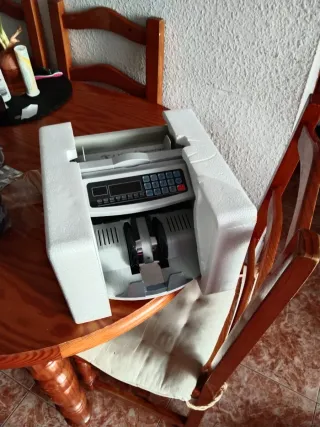 Máquina contadora de billetes de la marca LD, modelo 80. - Diseñada para contar dinero de forma eficiente. - Panel de control con teclado numérico y pantalla. - Mecanismo interno para el conteo de billetes.