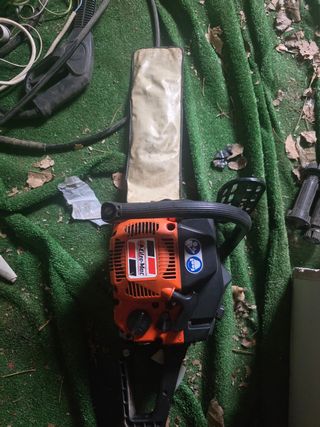 Vendida en el leroy merlyn en 145 euros. Usada muy poco, me compre una electrica y vendo esta. Motosierra Sterwins con motor de gasolina de 2 tiempos con una cilindrada de 40,1 cc y una potencia de 2 CV, idónea para un uso regular en el jardín en trabajos de poda de ramas y corte de troncos de gran sección con hasta 35 cm de grosor. Cuenta con cadena Oregón, carburador Walbro y espada de 37 cm de longitud
