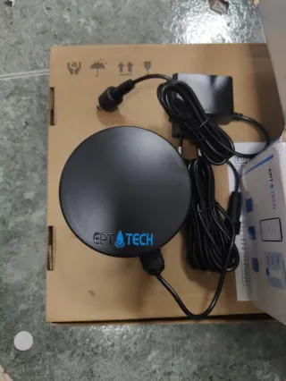 Sonda ultrasonica de la marca EPT TECH para medir el nivel de agua en tanques. Wifi app tuya o smart life. - Diseño circular en color negro. - Incluye cable de alimentación y adaptador.