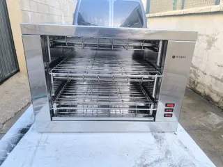 Tostador industrial de dos pisos con acabado en acero inoxidable. - Diseño moderno y funcional. - Marca: EUTRON. - Controles de encendido/apagado.